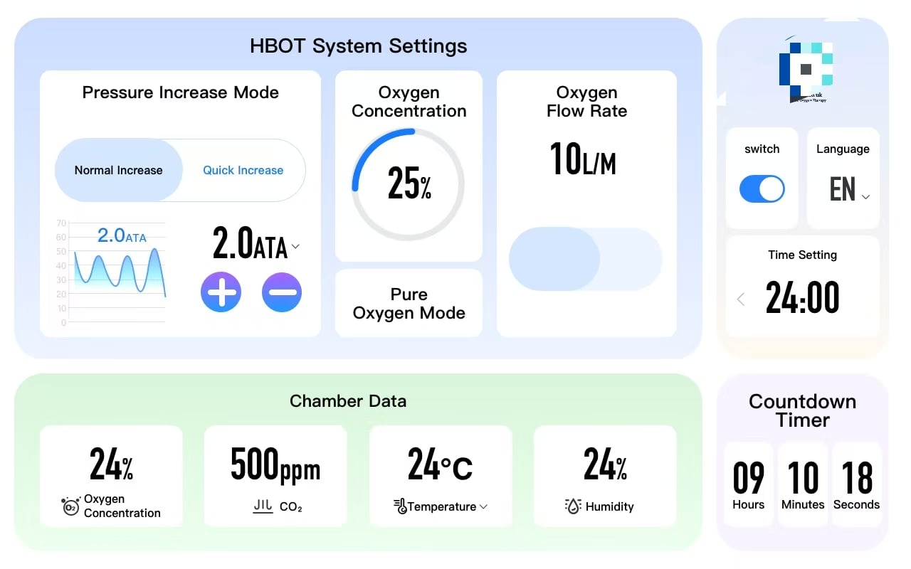 - Precision Pressure Control: Supports up to 2.0 ATA with real-time pressure adjustment and intelligent venting based on internal O₂ and CO₂ levels.